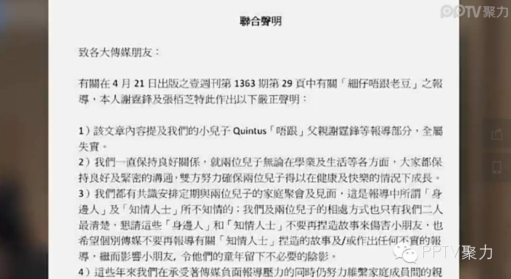 4月22日,谢霆锋、张柏芝联合发声明辟谣,称之前相关的报道内容全部失实。“我们一直保持良好关系,就两位儿子无论在学业及生活等各方面,大家都保持良好及紧密的沟通,双方努力确保两位儿子得以在健康及快乐的情况下成长。”