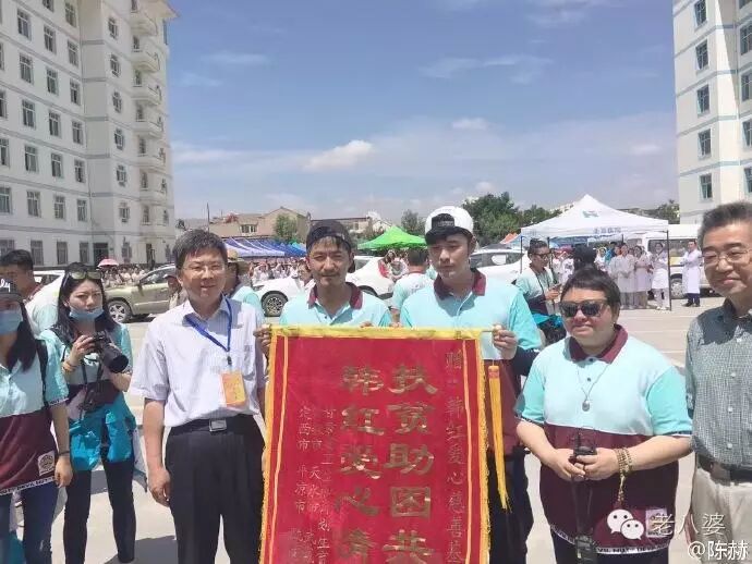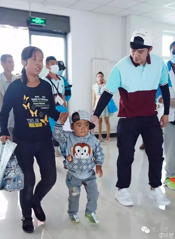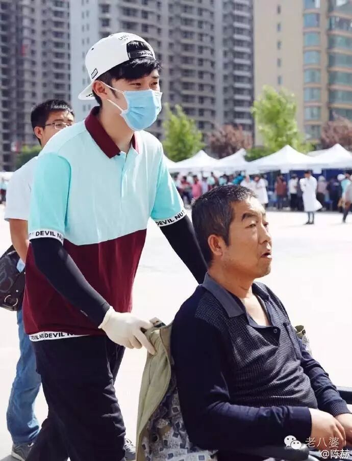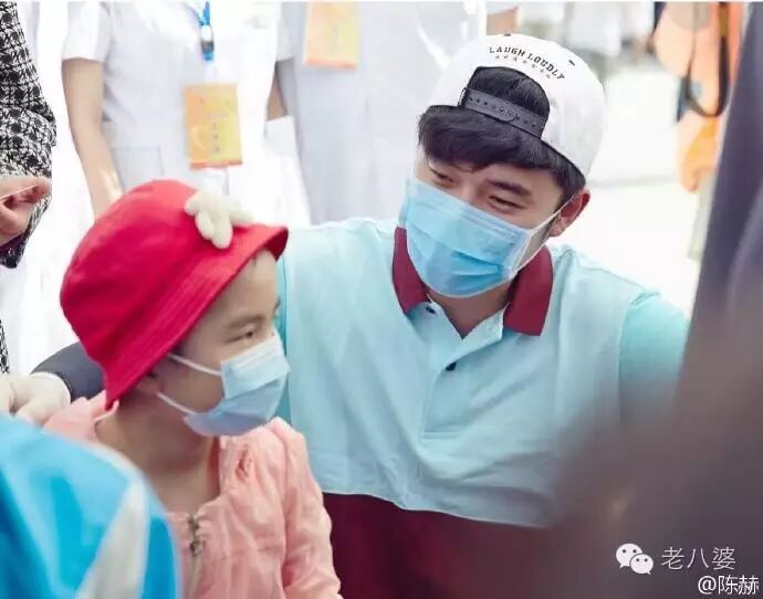 7月10日上午,陈赫在微博晒出多张他随韩红一起做公益帮助病患的照片,照片中的陈赫身着统一的蓝红色T恤,戴着口罩和手套和帽子,非常耐心认真的帮助病患。