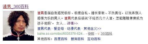 也因此,从那时起,近藤真彦成为了“渣男”的代表人物,时至今日,百度百科“渣男”词条,都是用他的头像做封面。
