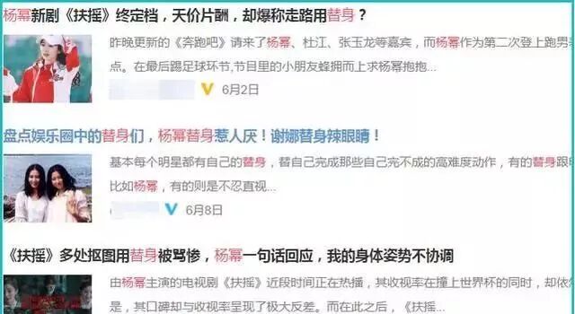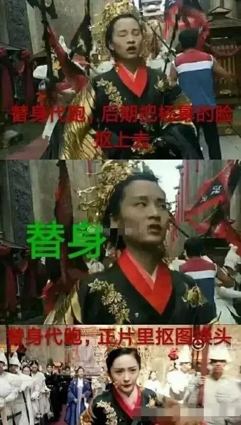 有一个抠图的细节是非常明显的,所有的动作都是替身完成的,最终却变成了杨幂的脸,把杨幂的脸抠图上去了