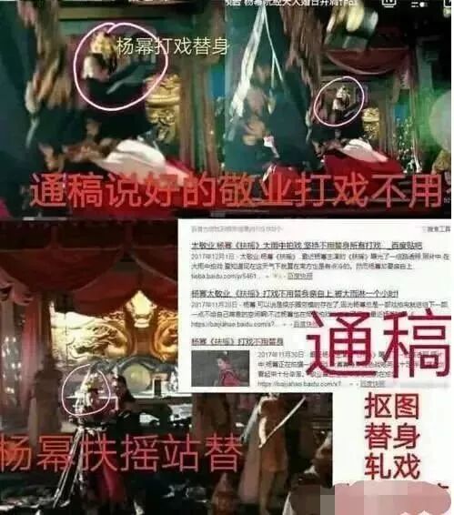 还有网友曝出杨幂用了大量抠图和替身