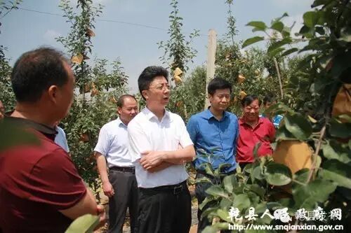 6月12日上午,县长谢军、副县长张振乾带领县政府办、果业局、水利局等部门负责人,先后到阳峪镇绿港双矮苹果基地,梁山镇官地村双矮苹果基地、海越千亩矮砧密植苹果基地,阳峪镇富林千亩双矮苹果示范基地、现代果业苹果综合试验站等处,检查指导现代果业生产建设工作。