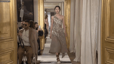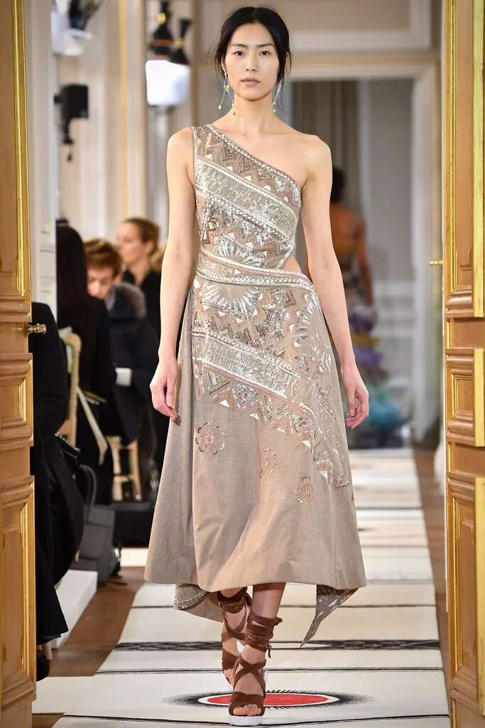▲受邀重回巴黎高定秀场的大表姐刘雯最近颇受关注,斜肩的刺绣裙,异域风十足,看似简单实则精心打造的妆容成为亮点。
