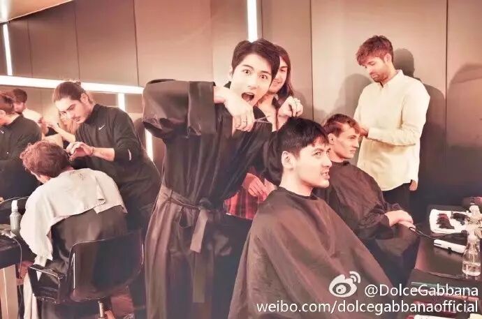 上台前还在Dolce&Gabbana的官博上淘气了一番,丝毫没有紧张感▼
