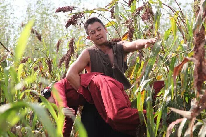 《红高粱》中饰演余占鳌,孔武有力的杠子头余占鳌靠力气活生存,这个人物阳光、阳刚、爷们儿,霸气十足,身上充满了原始的生命力。他从一个“吃杠子饭”的轿夫逐渐成长为“吃拤饼的”土匪首领。