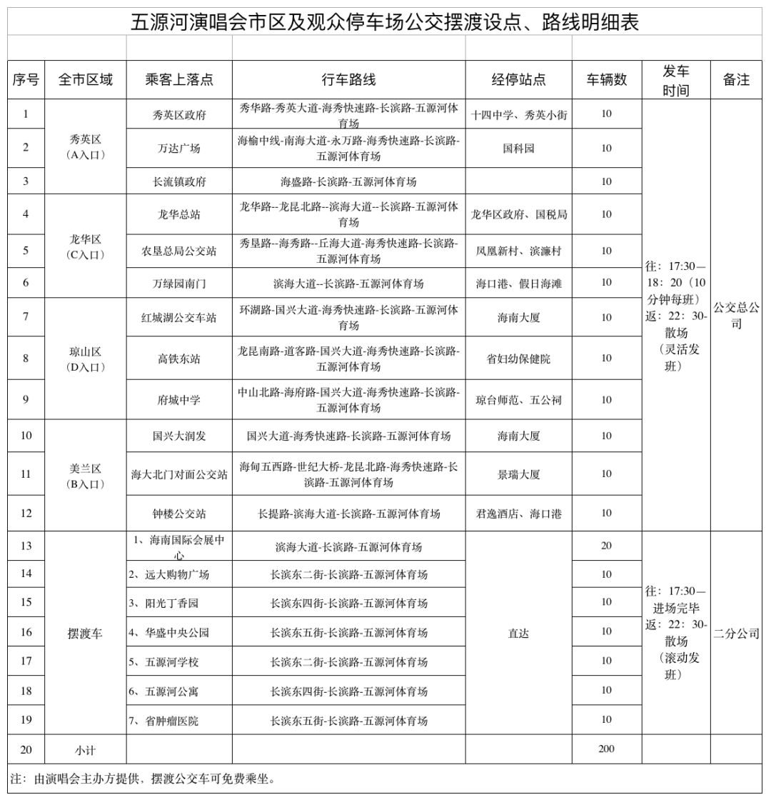 注:由演唱会主办方提供,免费乘坐。