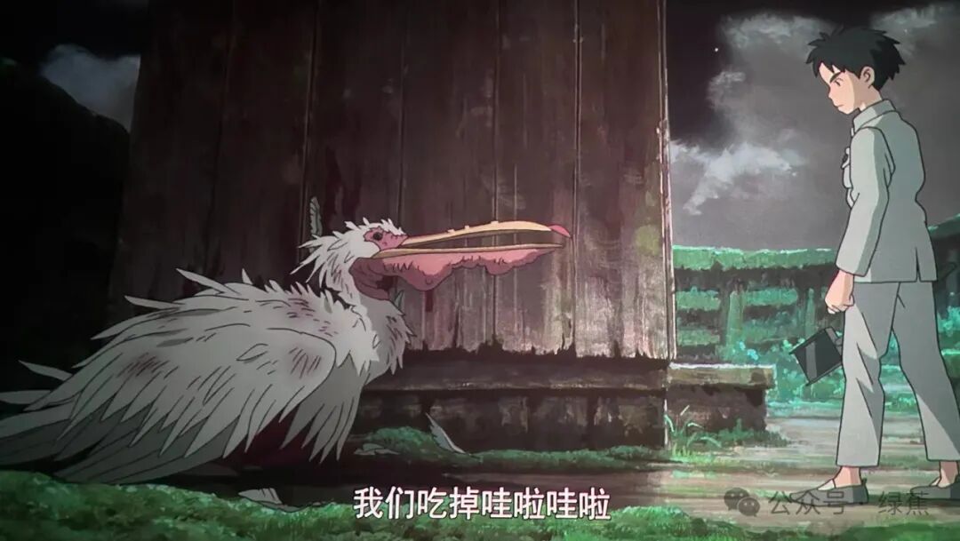 与此形成强烈反差,苍鹭一开口,便以粗野的嗓音告诉真人母亲未死的消息,它拍打着真人的房间窗户,以母亲的口吻大喊“救救我”,并一次次召唤真人随它去古堡寻找母亲。