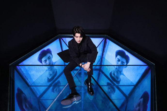 和路透里的清爽少年感不同,在节目阵容官宣视频里的蔡徐坤正装加身,发型也一丝不苟地梳好: