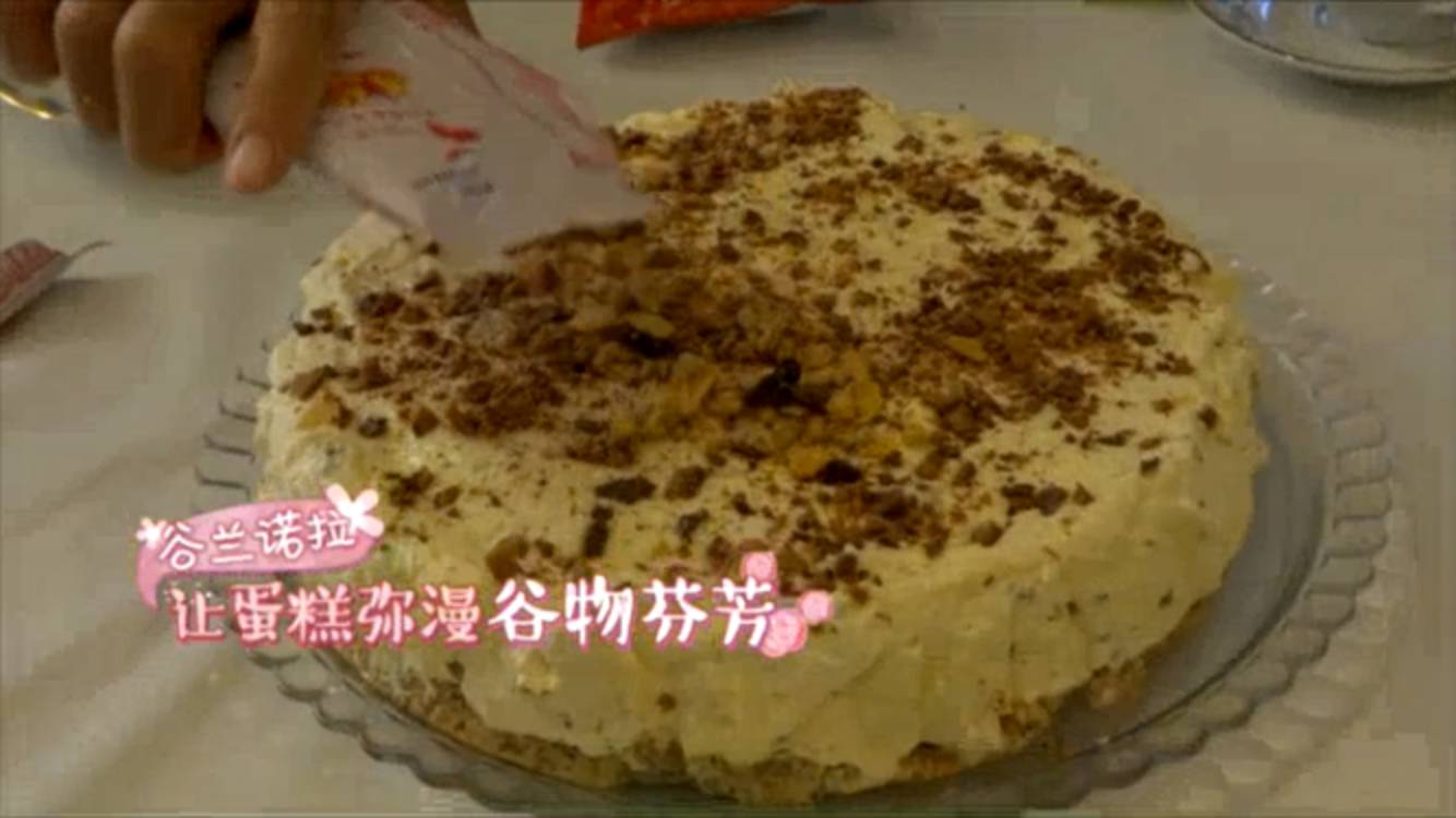 华丽丽的水果麦片被李治廷装饰在蛋糕之上,