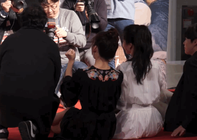 体贴周到,合照时帮同行女演员盖裙子,防止她走光;