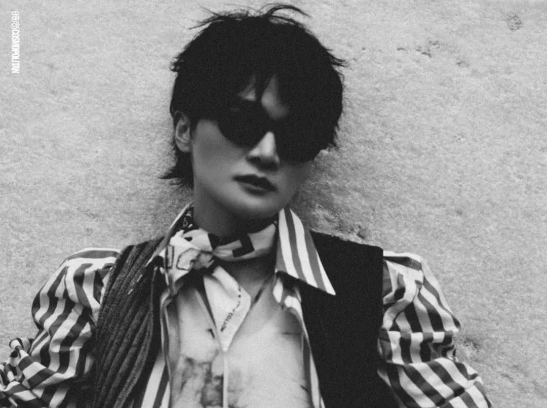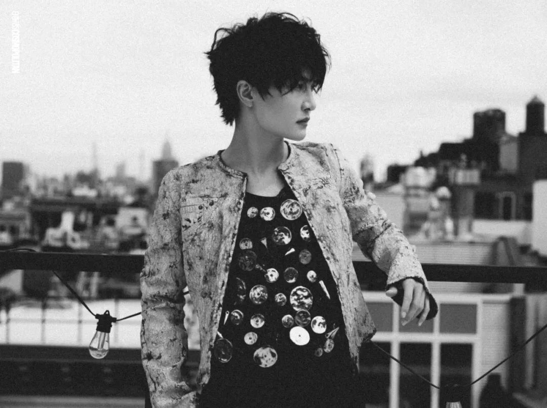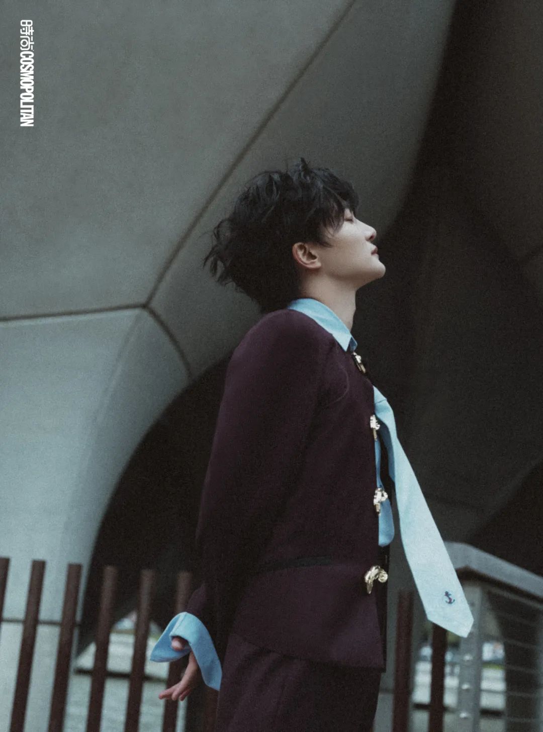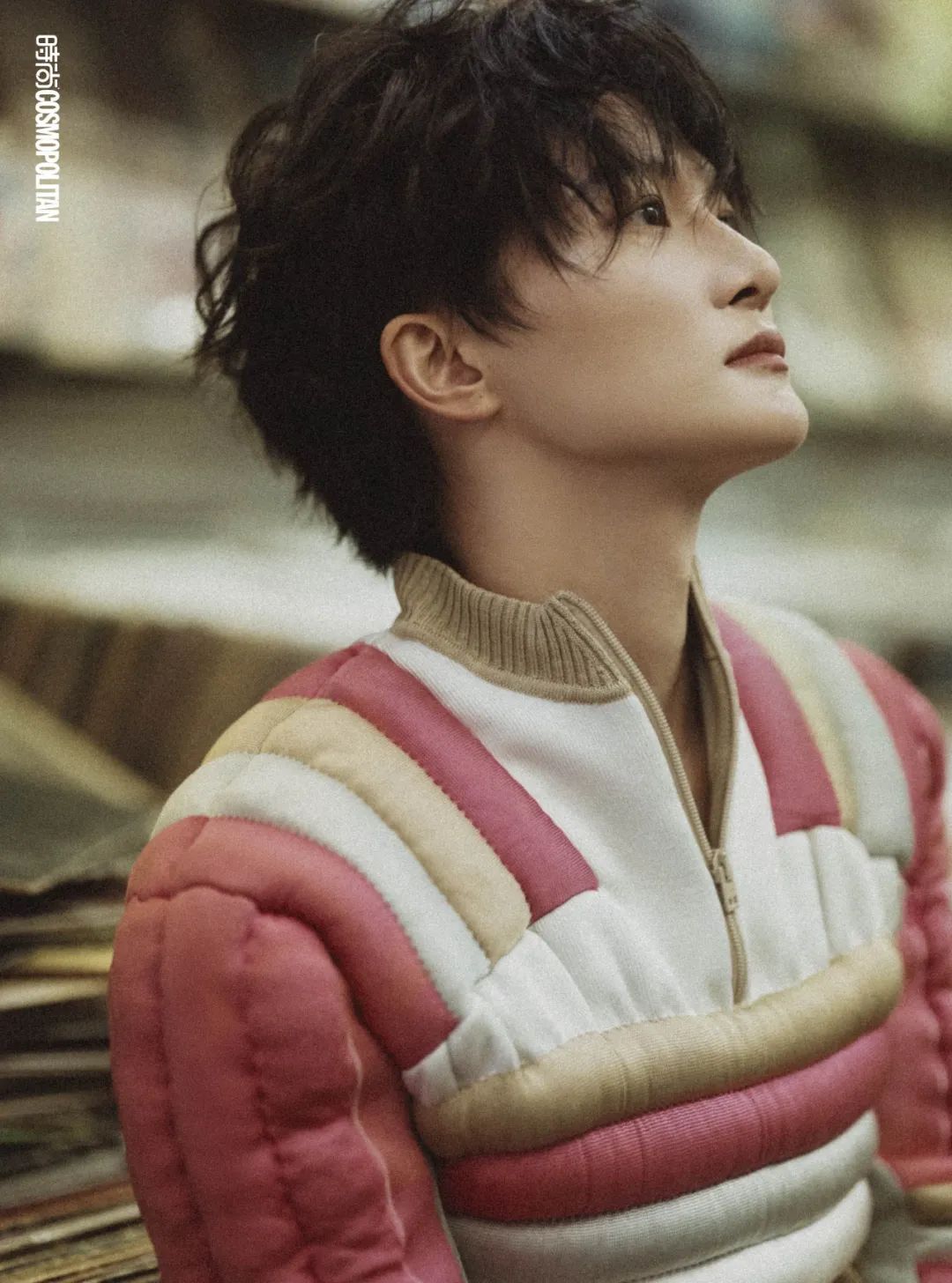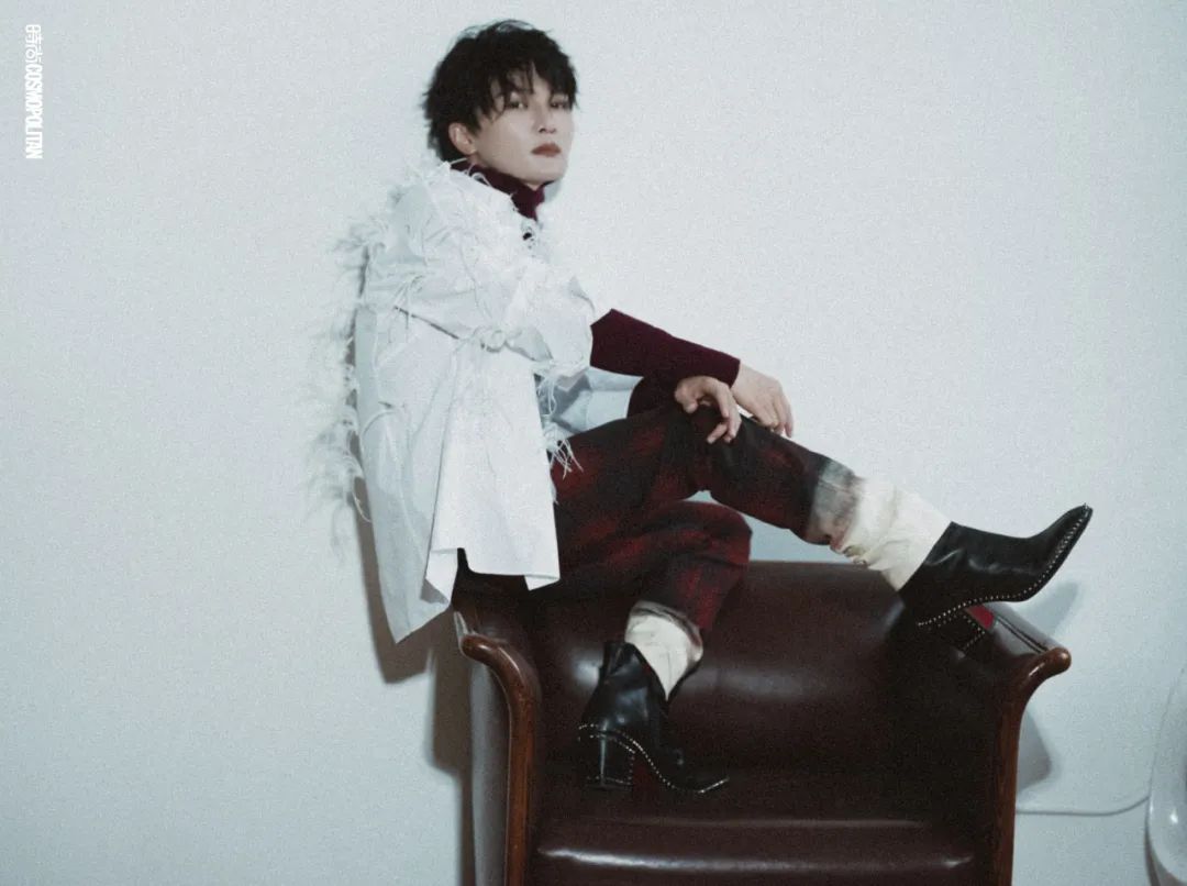 白色钉珠装饰长衫外套、中式盘扣设计竖领衬衫
