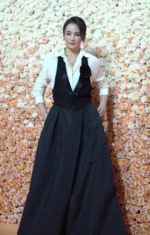现在的她出席活动的时候,特别是拍照的时候,脸上是没有什么笑容的,感觉这样的话确实会显得整个人比较凶呀,让人觉得比较有距离感,这个时候她穿了一条黑色的晚礼服裙,这条裙子穿在身上也是挺高级的