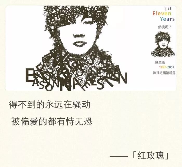 “也许每一个男子全都有过这样的两个女人,至少两个。娶了红玫瑰,久而久之,红的变了墙上的一抹蚊子血,白的还是床前明月光;娶了白玫瑰,白的便是衣服上沾的一粒饭黏子,红的却是心口上一颗朱砂痣,”——张爱玲《红玫瑰与白玫瑰》。