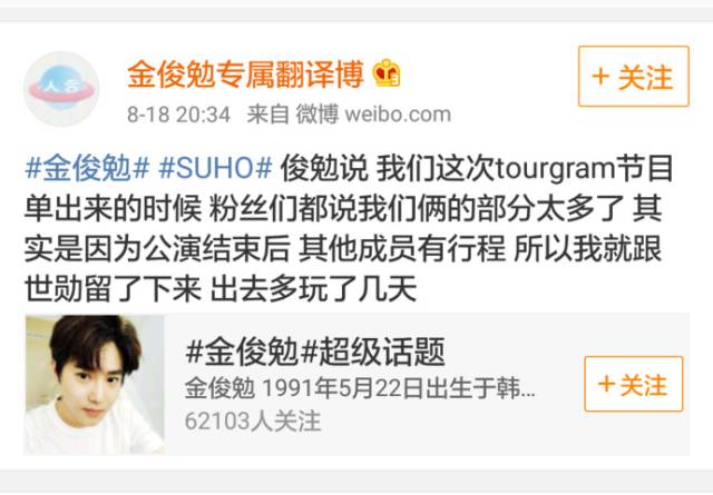 世勋每次更完ins,接着就会更新微博,就算是一样的内容也会专门在微博上再发一遍。其他成员只更新ins而微博并没有常常更新,就像我们平常玩微信就不玩QQ一样,不是不喜欢,只是懒而已。