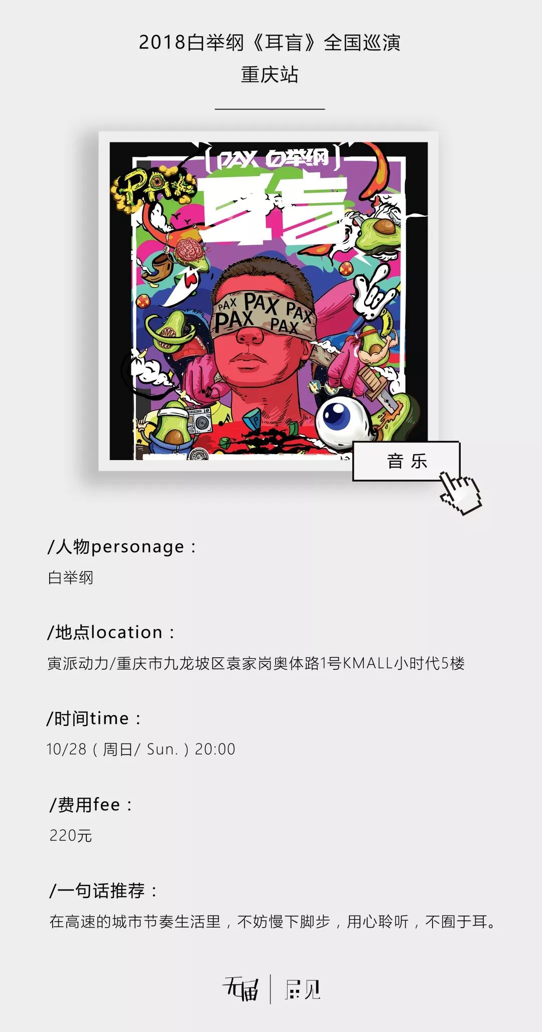 10月28日,小白和他的乐队将来到重庆,举办2018《耳盲》全国巡演。
