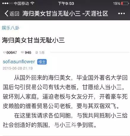 就连剧中出现的黑安迪的帖子,剧组都贴心地准备好了!天涯论坛惊现剧中的帖子,标题为“海归美女甘当无耻小三”,竟然还出现了疑是小美和关关的ID!