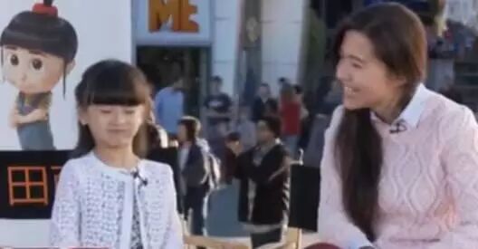 2014年,6岁的田雨橙(森碟)参与电影《神偷奶爸2》的配音,接受采访时也是相当活跃,双腿不停地左右乱晃。