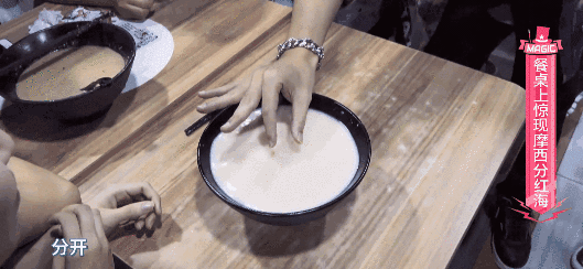 吃着饭兴趣来了,随手变个魔术。旁边人一尖叫又害羞了,故作淡定挥手离开。