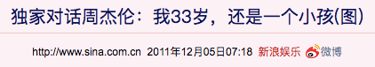 大约在九年前,周杰伦接受某杂志专访时坦言,虽然已经33岁了,但他内心还是个小孩。