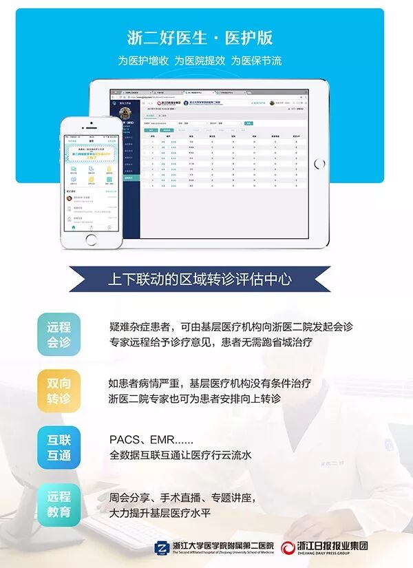 “让医疗行云流水、让健康如影随形”,浙二网络医学中心是由浙江大学医学院附属第二医院和浙江日报报业集团共同打造的重量级互联网医疗项目,旨在建设“全数据互联互通的网络医疗体系”。
