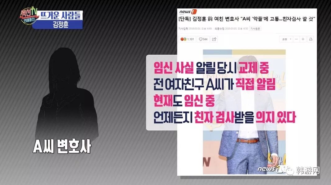 在4号播出的《Section TV演艺通信》节目里,律师表示虽然金桢勋说如果是自己的孩子的话,本人会负责,但是这对于女方来说是属于第二次加害。