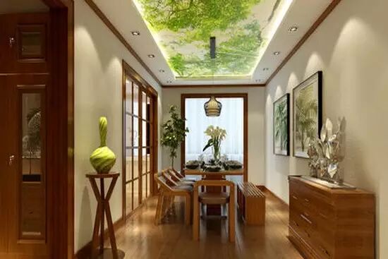 田园风格以提倡回归自然以表现悠闲、舒畅、自然的生活情趣。田园风格可以说是一种欧式的装修风格,那如果将欧式跟中式风格融合在一起,效果会是如何的呢?小编就给大家准备了一些中式田园风格装修图片,大家可以来看看哦。 实木质的地板,搭配原木色风格的桌椅,桌上摆上淡雅清香的百合花,给人用餐时的清净与舒适。田园风格的绿树方形彩绘壁纸吊顶,搭配白色的墙面,墙上绿意十足的风景画,让整间餐厅充满宁静婉约味道。