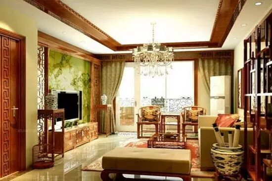 客厅采用了简中式的风格,整个空间最吸引人的就是电视背景墙上那款绿色的山水画,两侧是雕花的木质边框,在中式木质电视柜的衬托下,有着一种清新自然的感觉。沙发侧面的博古架,在青花瓷的卷画筒的陪衬下,将房间的书雅气息表现出来。