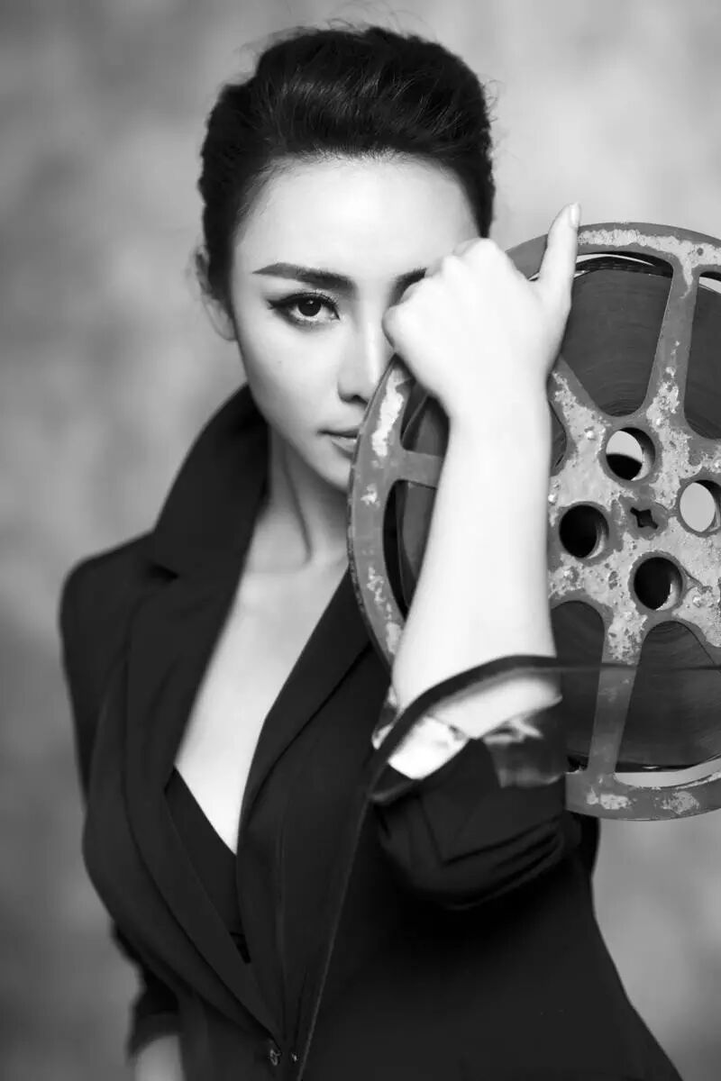 梳起刘海露出额头的柳岩表情冷峻眼神凌冽。