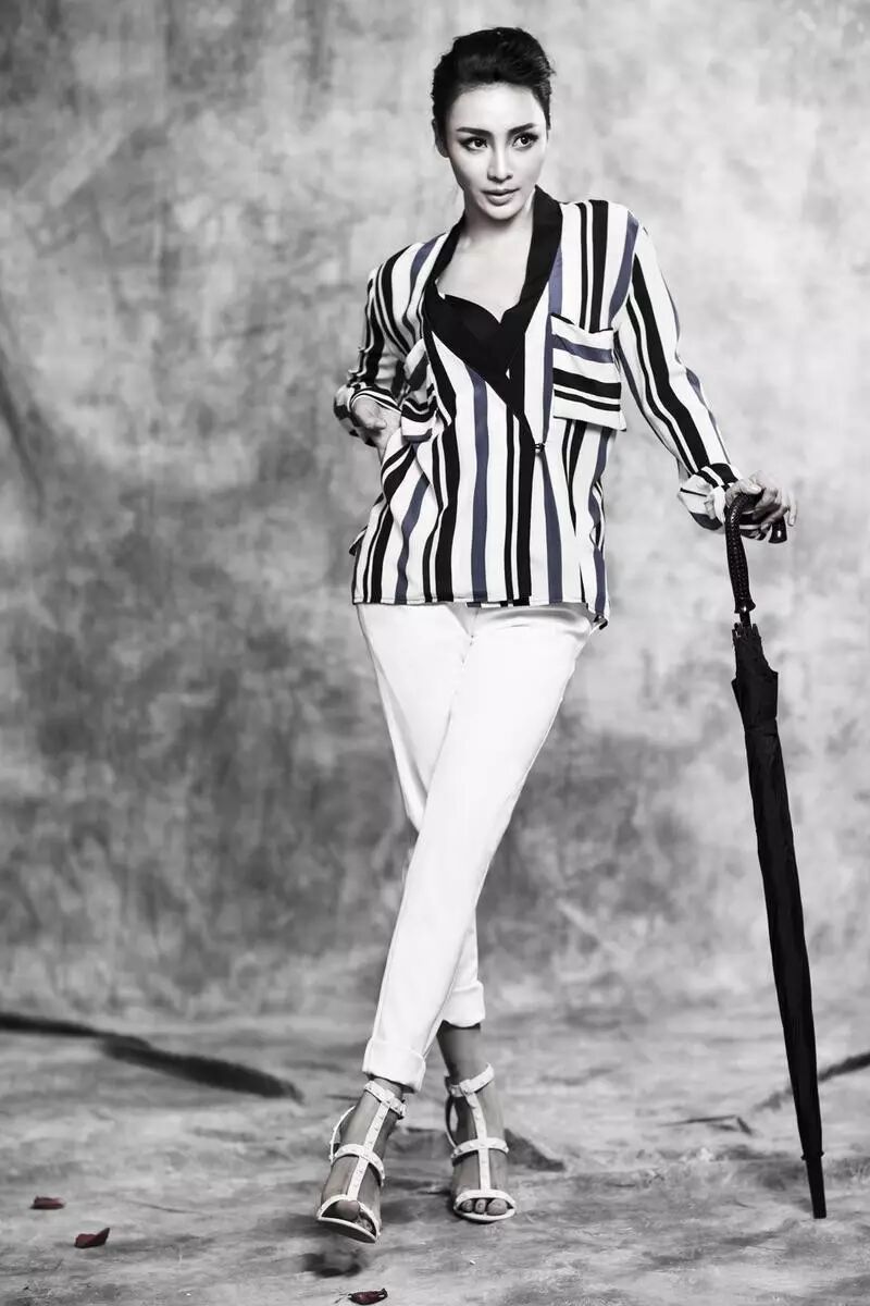 柳岩演绎复古气质浓厚的中性风采,眼神犀利,攻气十足。