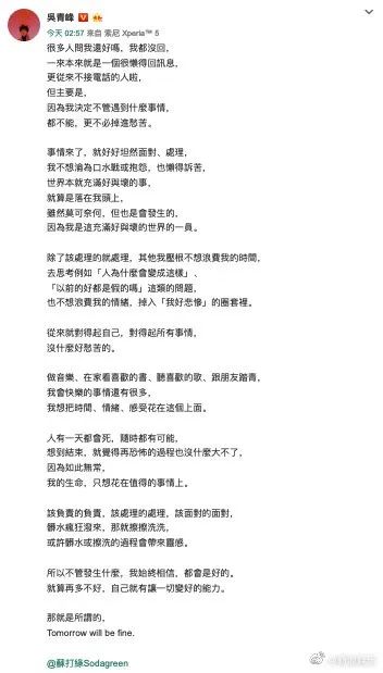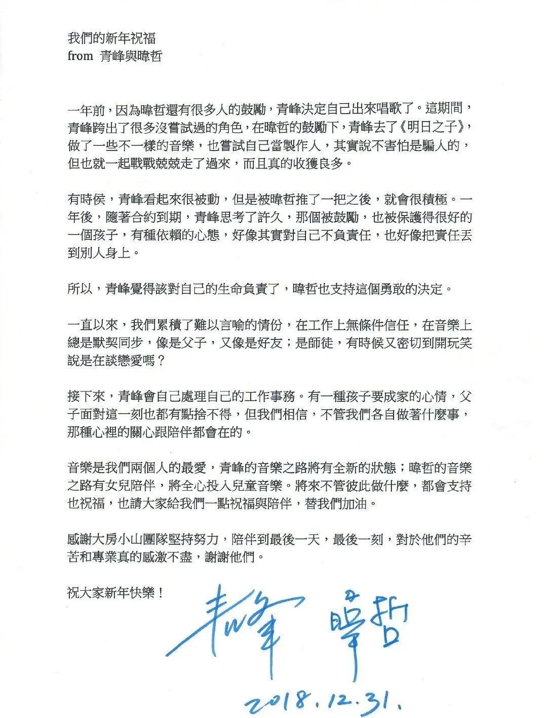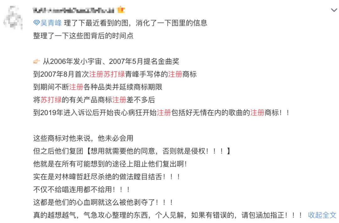 吴青峰方面的说法呢,两人之间的“词曲版权授权合约”已于2018年年底终止,林暐哲在2019年单方面要求延长合约,但吴青峰拒绝了