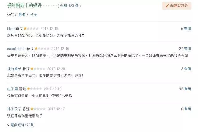 再来看看豆瓣口碑如何:在豆瓣里还没有评星,有123条评论。