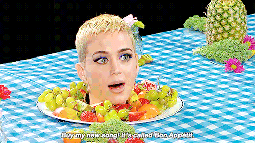 要说酷爱水果的典范一定要算上“水果姐”Katy Perry。为什么叫水果姐?有种说法是她非常喜欢穿戴水果类衣饰,而且在她的演唱会上,不管是造型还是道具上,都可以看到很多水果出境。甚至上次她在格莱美演唱I kissed a girl的时候,整个舞台都是水果!