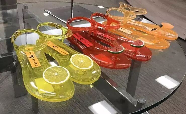 她的品牌推出的水果平跟夹趾扣带果冻香味女凉鞋,闻起来还自带水果香气,简直想吃掉的节奏!