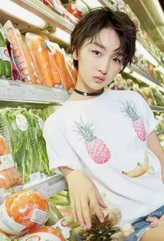 周冬雨穿这件粉嫩的菠萝T,还真符合她萝莉的气质呢~