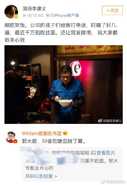 此梗,看得大家心里发憷啊。赶紧劝告郭可爱,那“面”可吃不得啊!剧迷朋友在微博纷纷发起 “劝劝郭大爷,千万别吃面”的营救行动。不明所以的李建义老师发博回应。