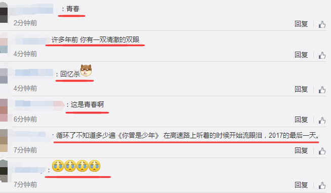 “循环了不知道多少遍《你曾是少年》,在高速路上听着的时候开始流眼泪”、“回忆杀”、“这是青春”