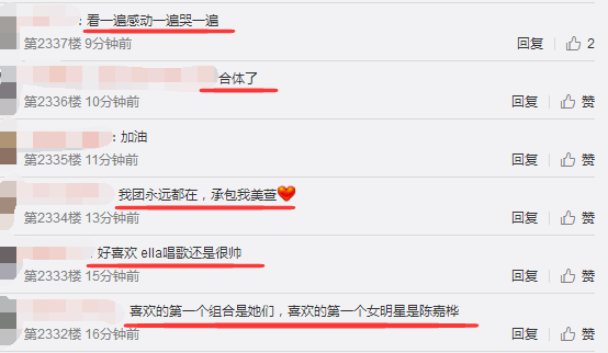 在表演结束之后,Ella还在微博上发文感谢粉丝们一直以来的之后,“谢谢你们,准备新年快乐,姐妹在一起真的很失控,但我爱这失控的时刻,我爱我的姐妹!”