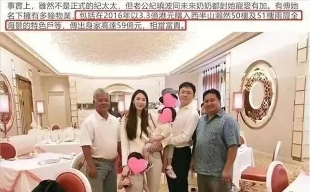 据说在吴佩慈生下第一个孩子的时候,纪小波就奖励了她两套价值3.5亿的豪宅和21%的公司股份,在生下儿子后更是奖励40亿元巨款。