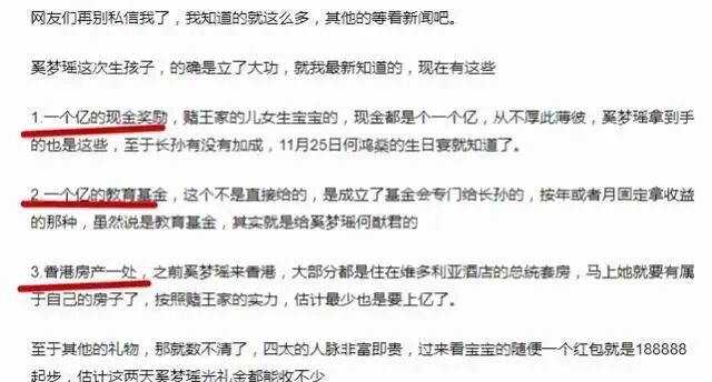 据爆料,奚梦瑶因为生下长孙得到了极其丰厚的“奖励”。