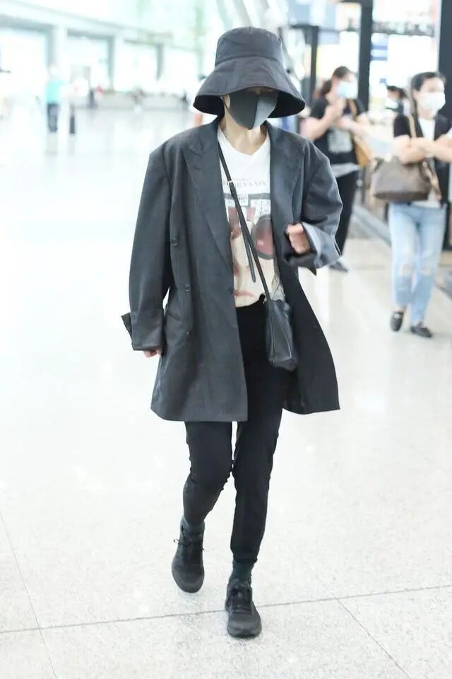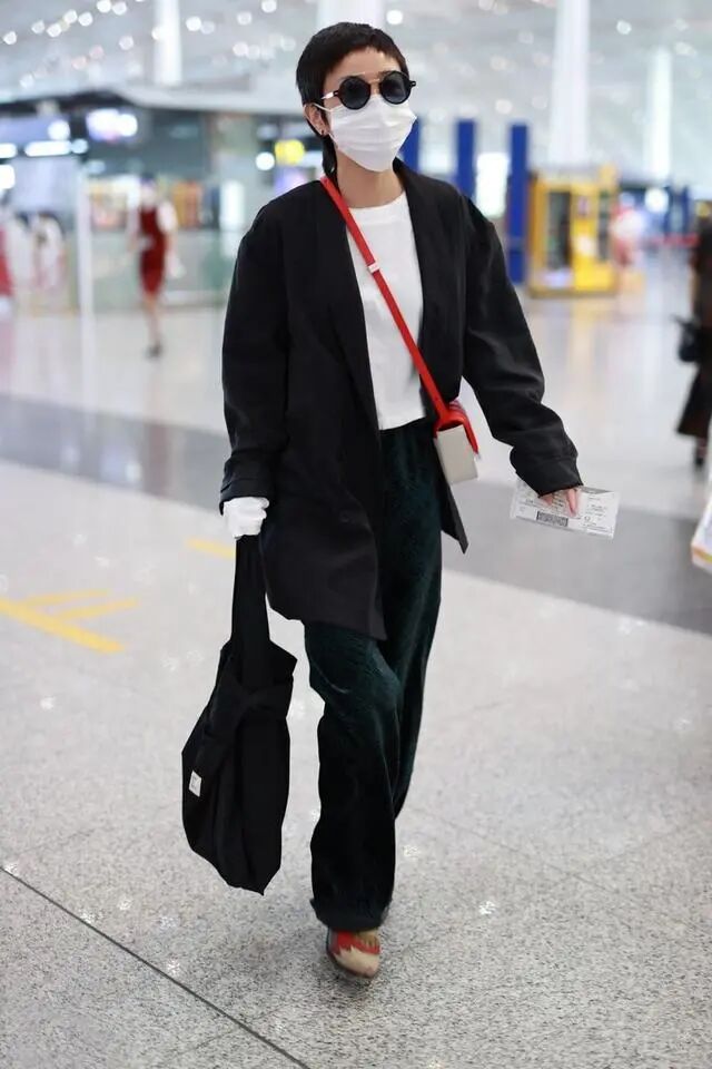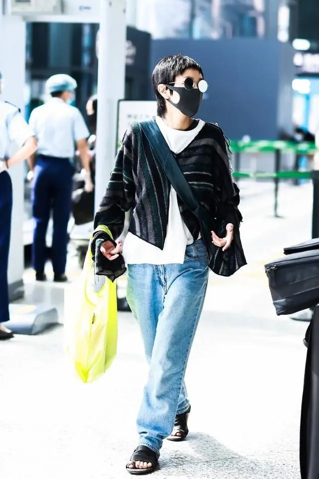 带有一点时尚感的上半身穿搭,选择的是比较宽松的服饰,打造出机场装束,看起来显得很自由。牛仔长裤的自在感以及简约范儿,也是把随性与悠然风给驾驭了出来,而这样的穿搭造型简单又百搭。