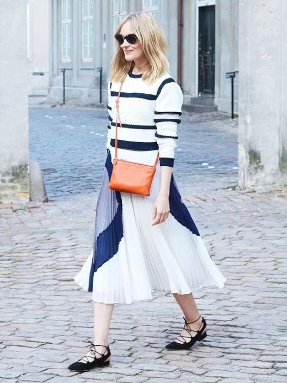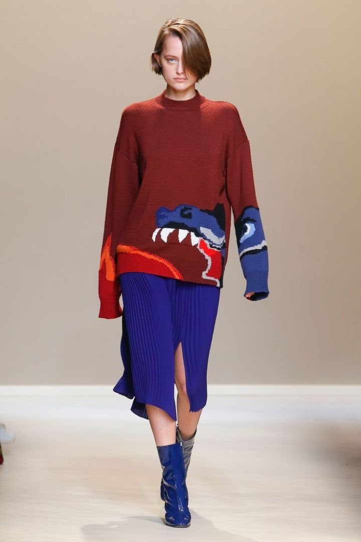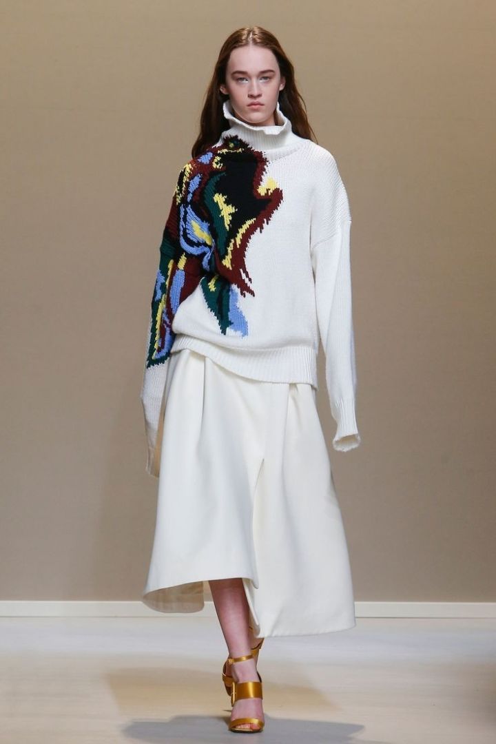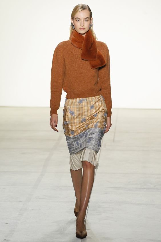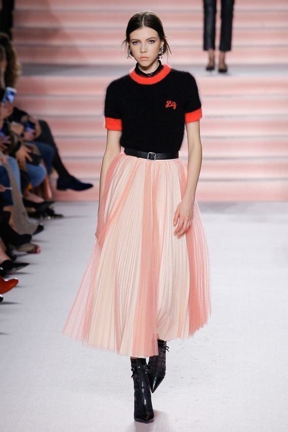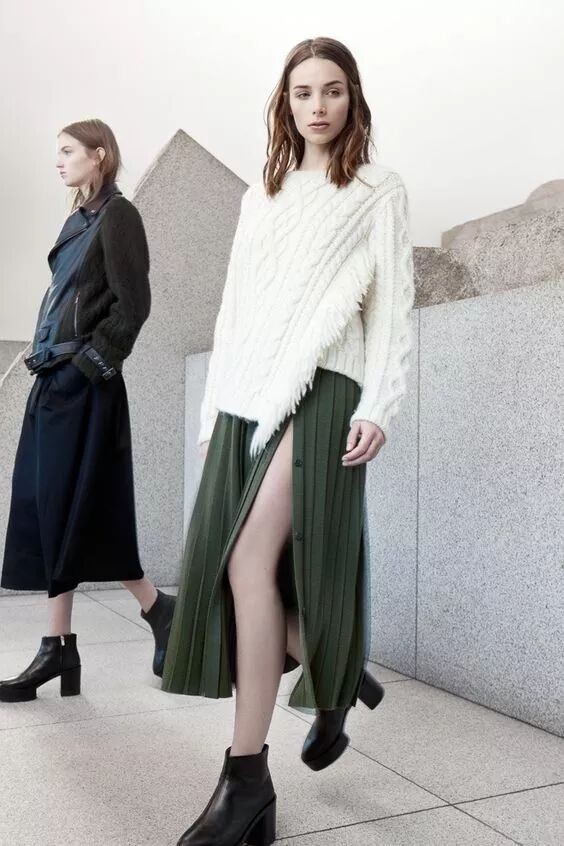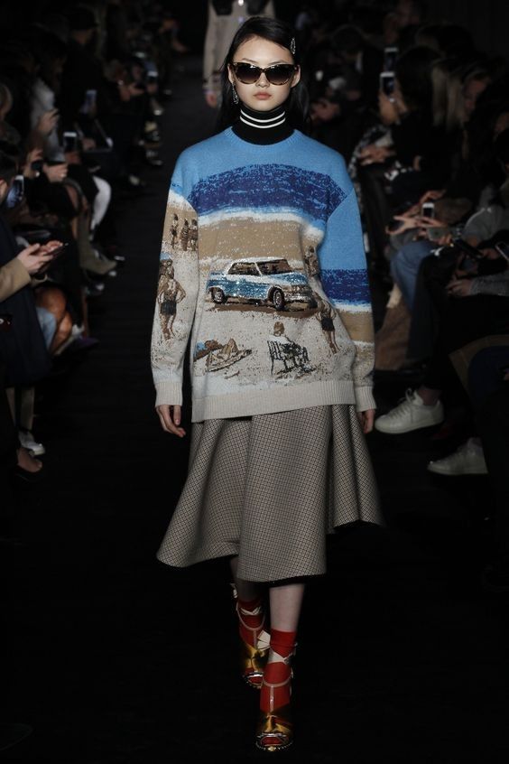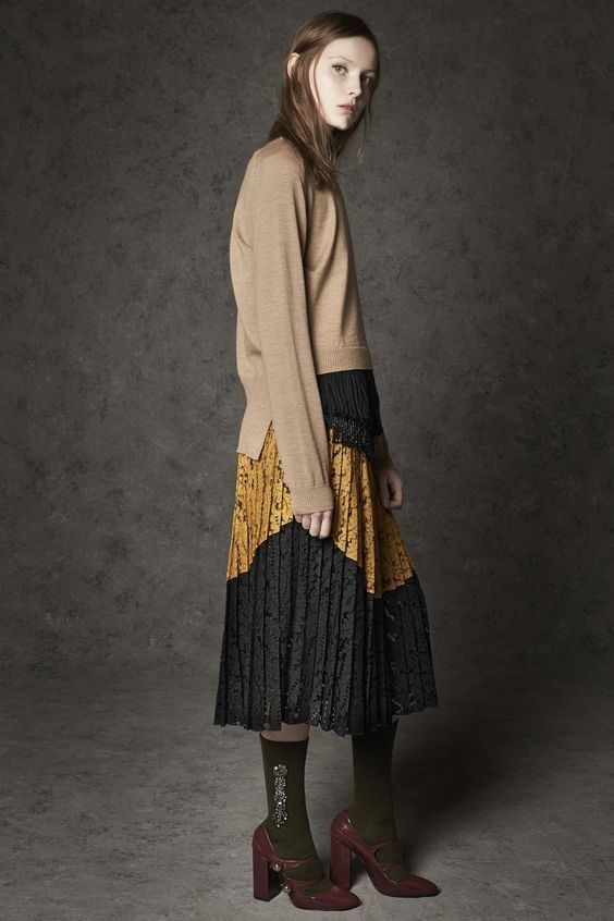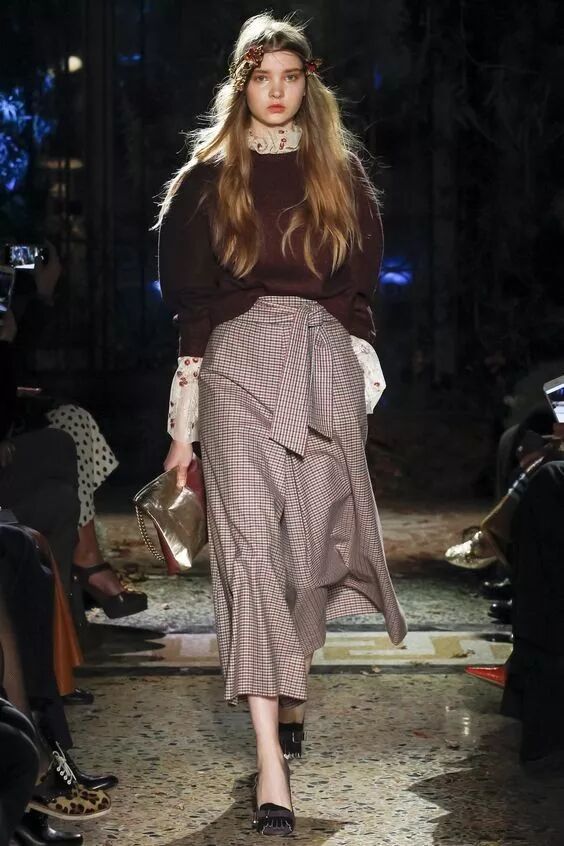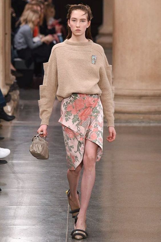 廓形感毛衣与灵动百褶裙的搭配,在今年的秀场中出现率超高。浪漫又文艺的百褶裙,与复古毛衣组合成最有秋天风韵的画面。▼