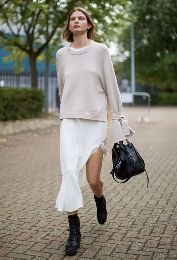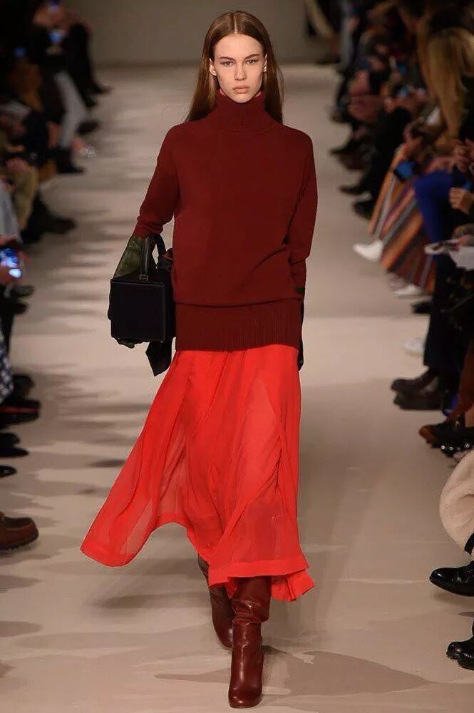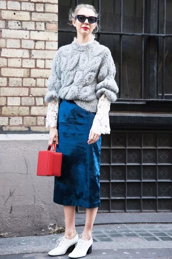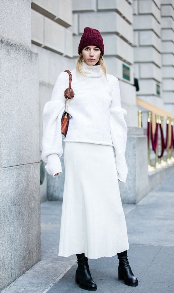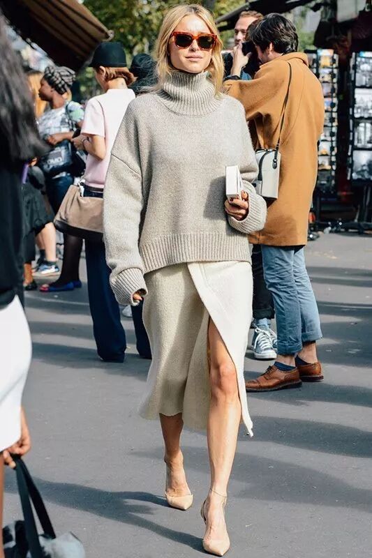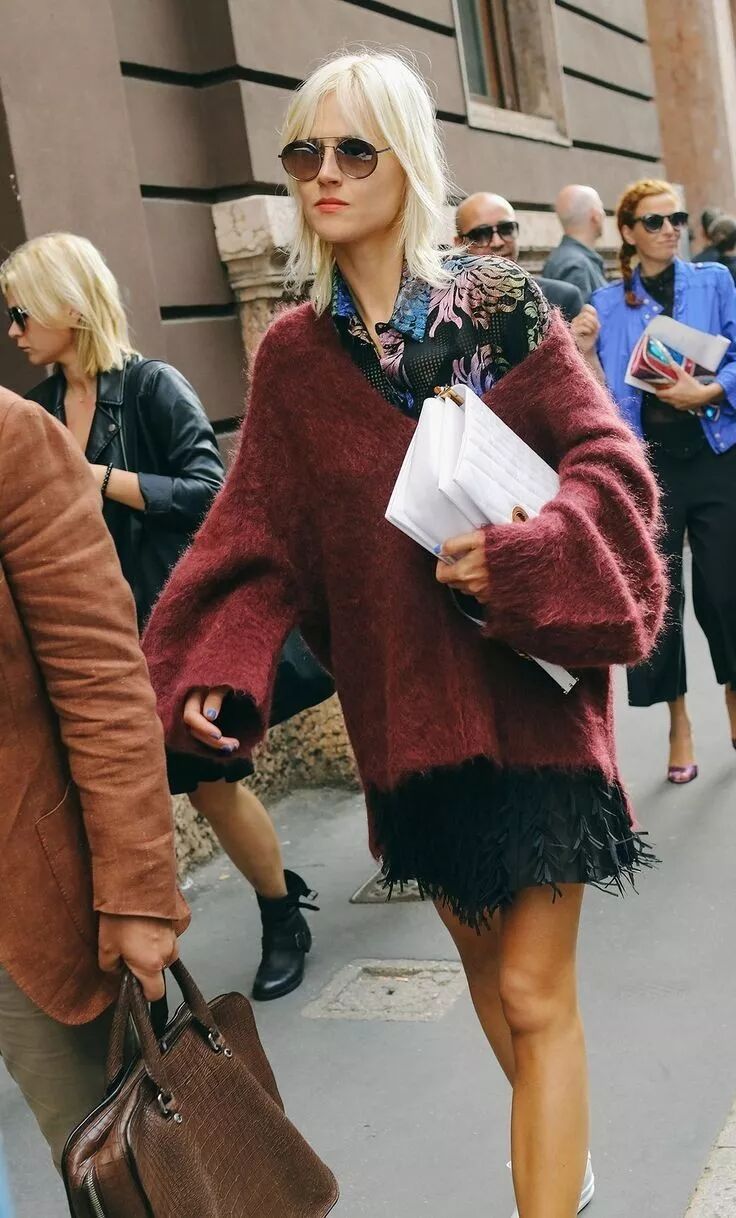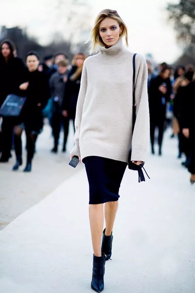 看了这么多大毛衣,有没有发现,无论是秀场还是潮人,都喜欢用半身裙搭配,这种穿法在今年真真的火了!