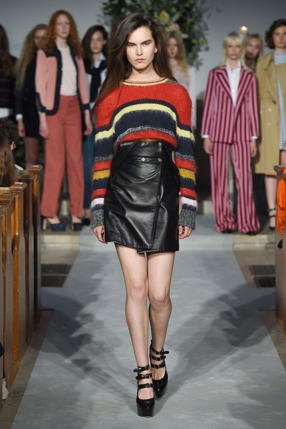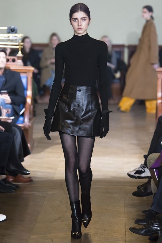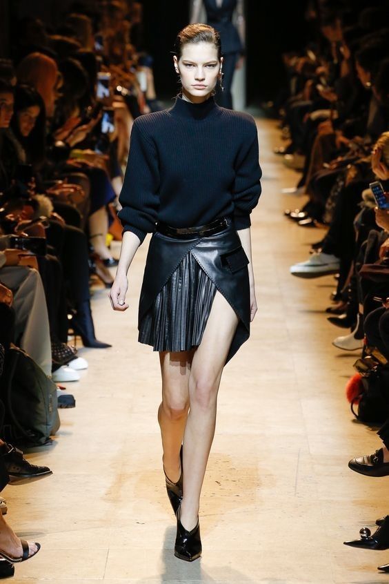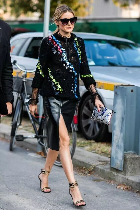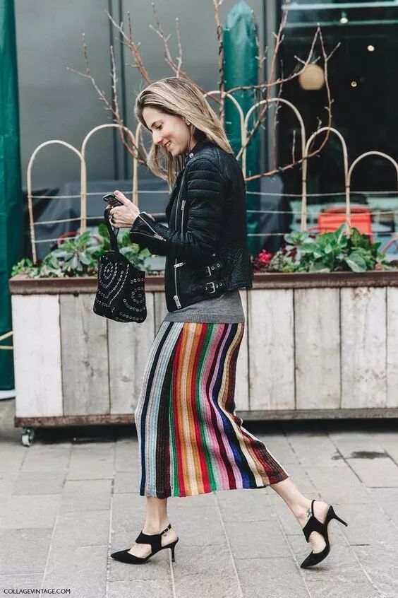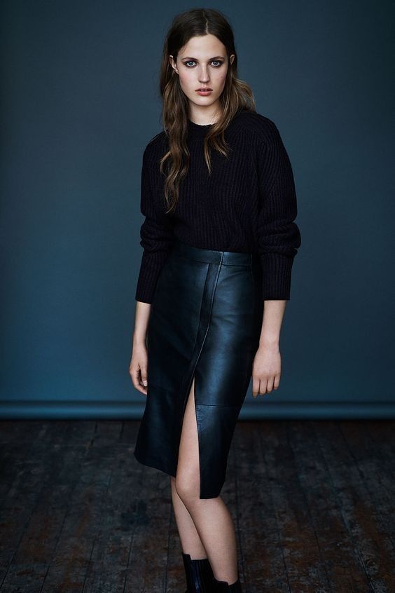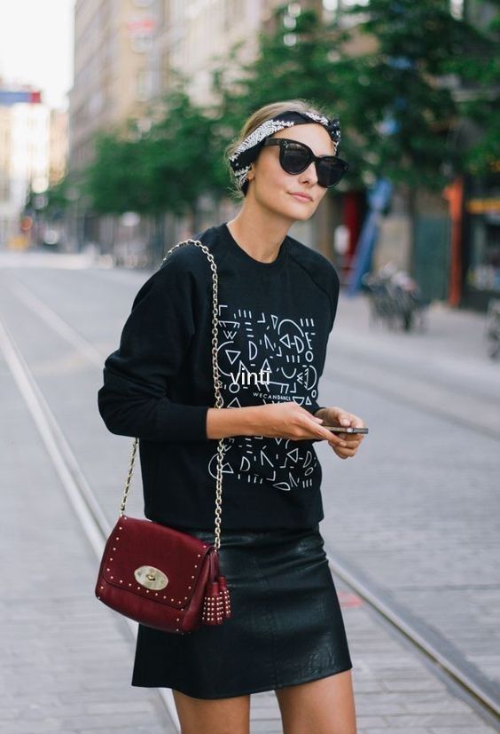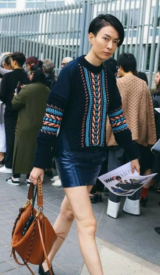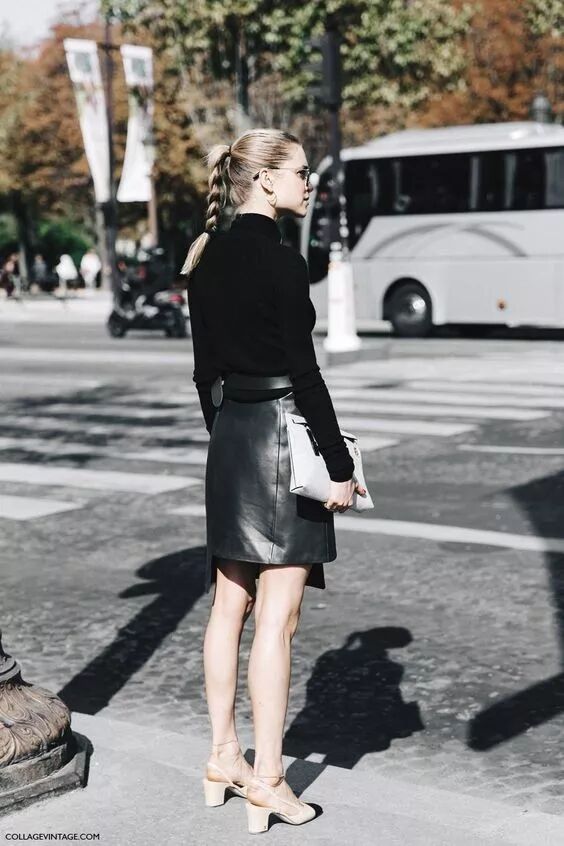 想要穿出时髦感,皮裙不宜选择长款,会显得很邋遢。▼
