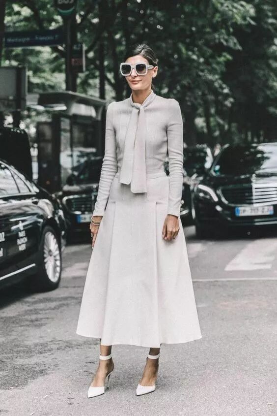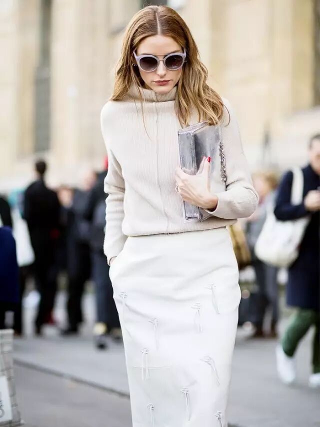名媛奥莉薇亚把铅笔裙与毛衣诠释出美而不艳的高级感,搭配一双小白鞋轻松大气。▼