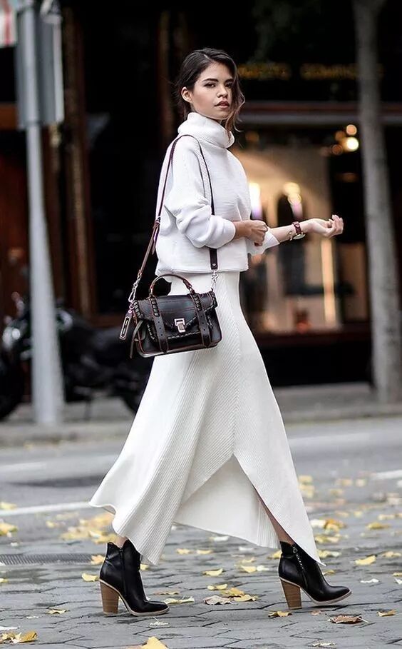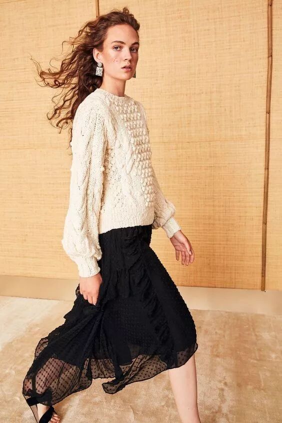 选择不规则设计的长裙,搭配简单的毛衣也能很出挑。▼