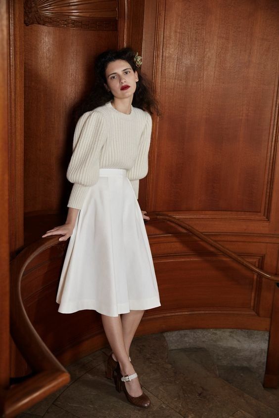 毛衣搭配阔摆伞裙,不仅能够极尽优雅知性的迷人魅力,宽大的裙摆还能够藏肉显瘦,即便大腿上有多余的肉肉也都可以统统遮住。▼