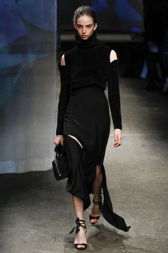 开衩裙最懂女人美,性感得恰到好处。在今年的秀场上,设计师们大胆的将中性毛衣与妩媚的开衩裙组合,让千篇一律的秋冬衣橱,变得很浪漫。▼