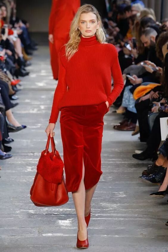 除了黑色皮裙,今年流行的猩红色也十分抢眼。▼