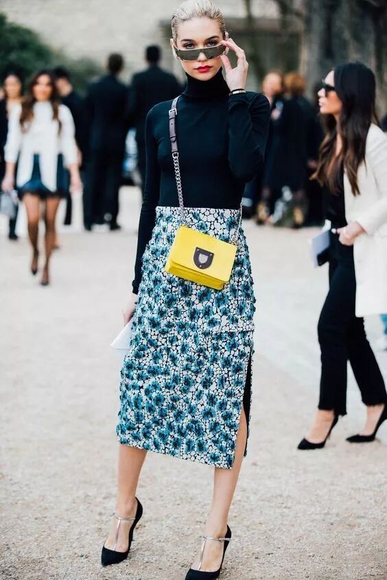 不需要一味的盯着基本款,可以大胆的选择一些前卫的面料,一扫铅笔裙的老气感,时髦极了。▼