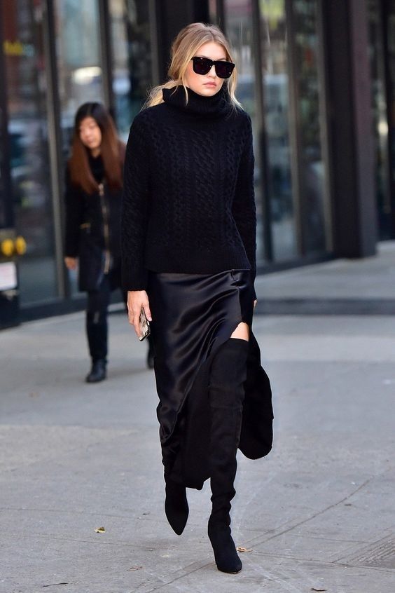 毛衣与不同材质开衩裙搭配,更能碰撞出或率性、或温婉的气质。▼
